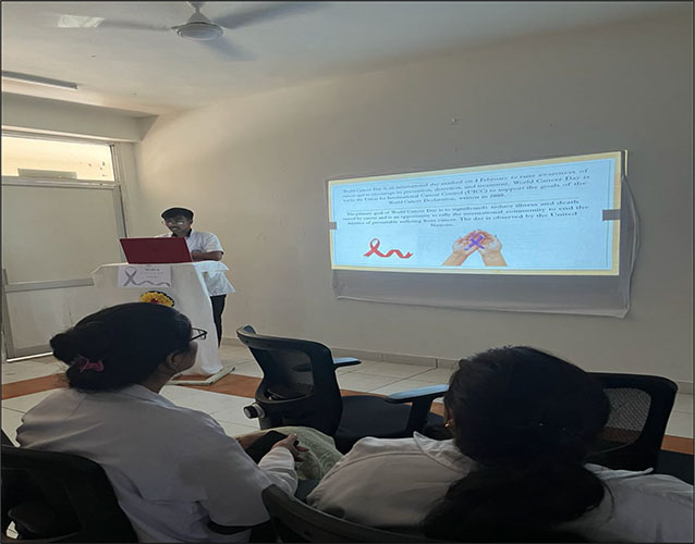 NSS unit of Mansarovar Denal College organized World Cancer Day. Every year world cancer day is celebrated on 4th February. Primary purpose of celebrating world cancer day is to reduce the number of cancer patient by creating awareness. Theme of celebration was close the cause gap. Seminar & Quiz competition was organized.