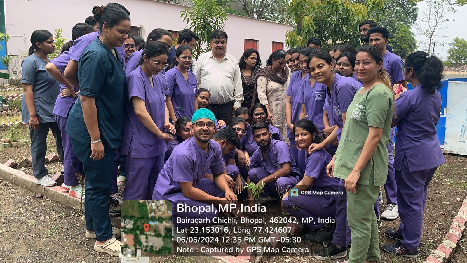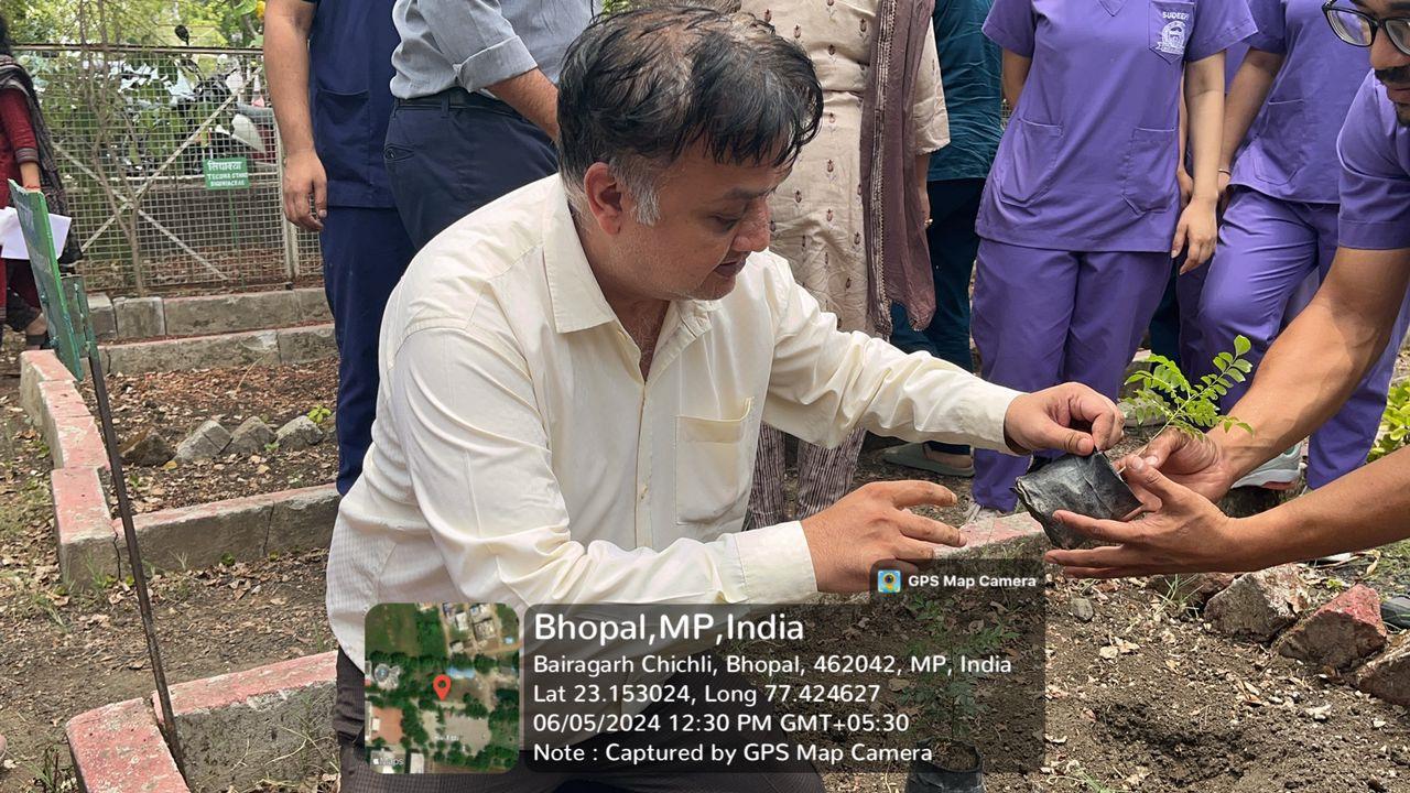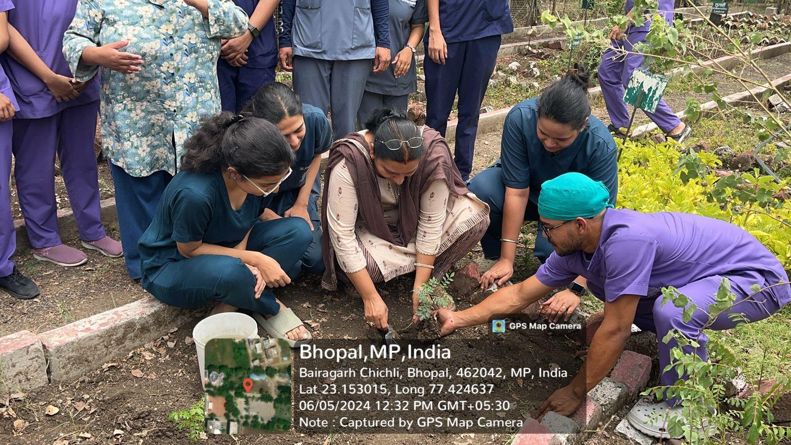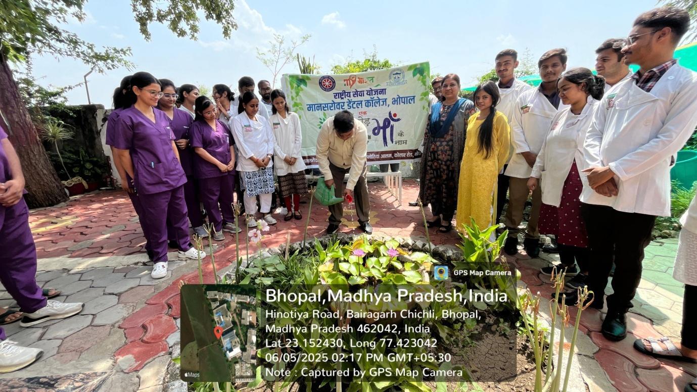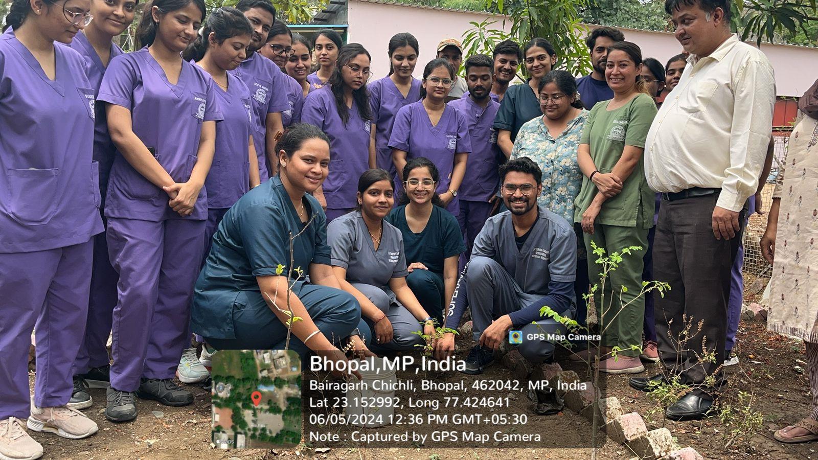 NSS unit of Mansarovar Dental College, on the eve of World Environment Day initiated a sapling plantation drive in the college campus. The initiative was met with great enthusiasm as everyone came together to plant a variety of native trees around the campus in an effort to maintain a healthy environment in mitigating climate change. Students actively participated in the activity, understanding the significance of contributing to a greener and more sustainable future. As the saplings were carefully planted, the faculty members stressed the need for continued care and nurturing of the trees to ensure their growth and long-term impact on the environment. This event not only served as a symbol of the college's commitment to environmental conservation but also inspired a sense of responsibility among the participants to protect and preserve nature.