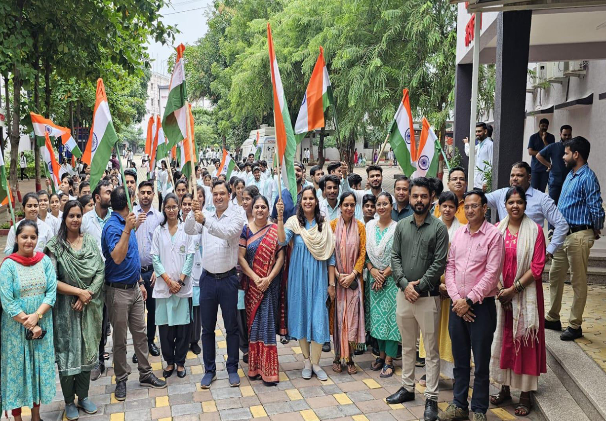 “Har Ghar Tiranga” is a campaign under the aegis of Azadi Ka Amrit Mahotsav to encourage people to bring the Tiranga home and to hoist it to mark the 75th year of India’s independence. The sole objective of the Har Ghar Tiranga campaign is to inculcate a sense of patriotism and respect for the national flag in the minds of Indian people. that's why the Prime Minister of India, Shri Narendra Modi has requested to hoist the national flag at every home. The national flag of India is a symbol of the pride of the country. Through the Har Ghar Tiranga campaign, people have to be informed about the importance of the national flag. Everyone should respect the national flag of India. It is a matter of pride for all Indians to celebrate the Azadi Ka Amrit Mahotsav and to be associated with the Har Ghar Tiranga campaign. Therefore it is the duty of all Indians to join the campaign run by the government and cooperate in making this campaign a success. Tiranga rally was conducted by college students and teachers took part in it with enthusiasm College celebrated Independence Day on the campus. All the students and the staff respected the nation by their presence. Principal hoisted the flag and gave the Independence Day message.Students expressed their happiness towards the way of programme organization and expressed their gratitude to all the national leaders,who sacrificed their lives in bringing freedom.