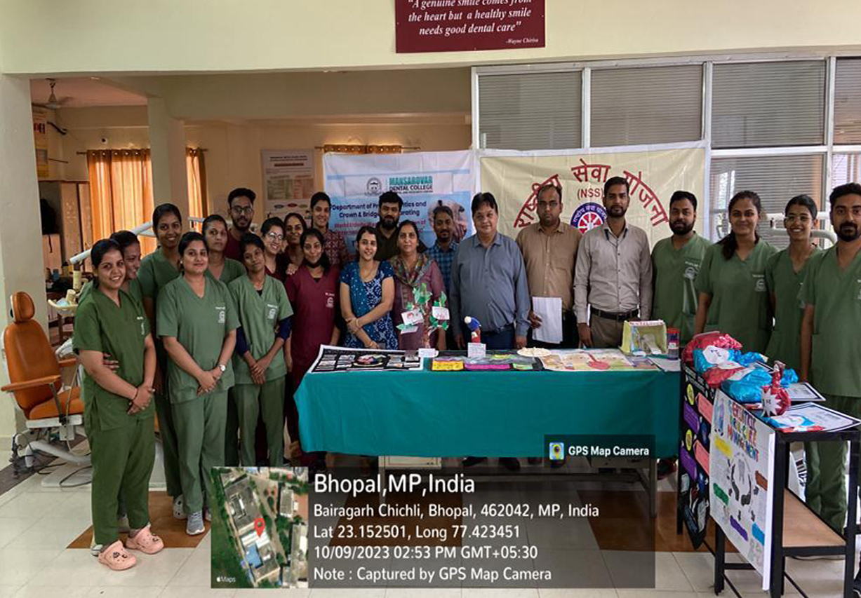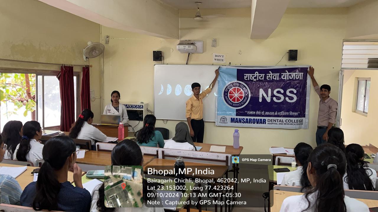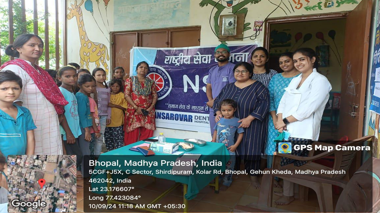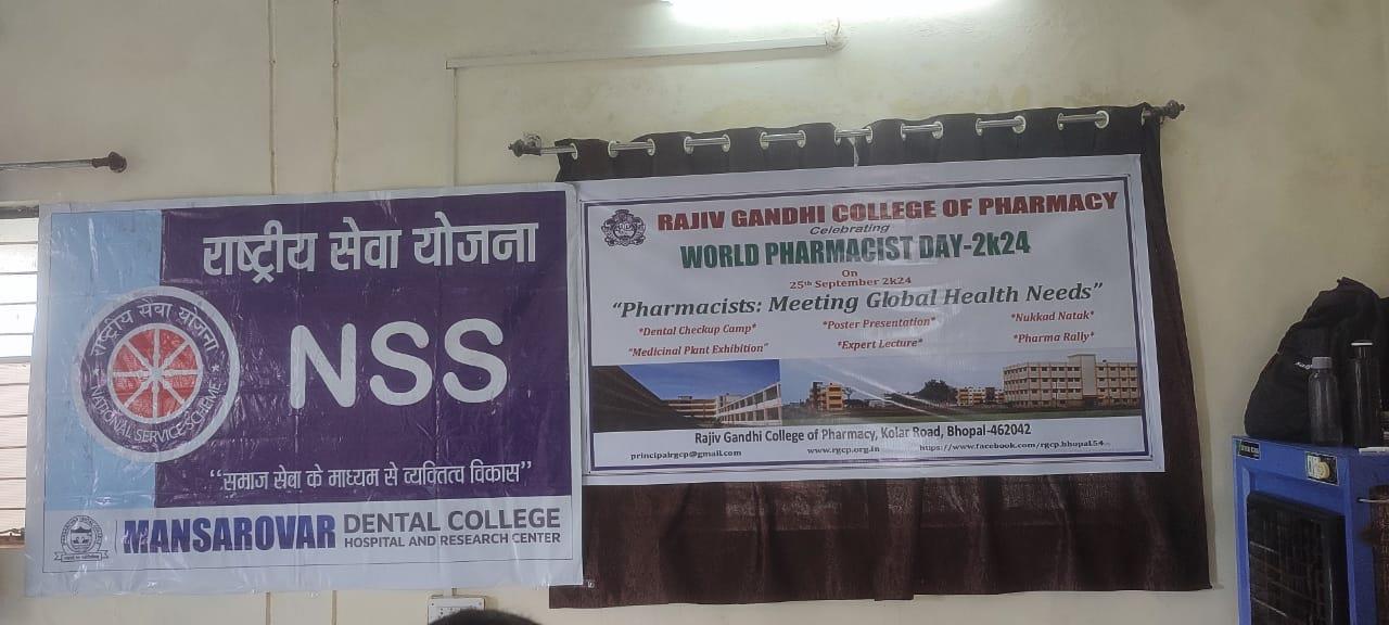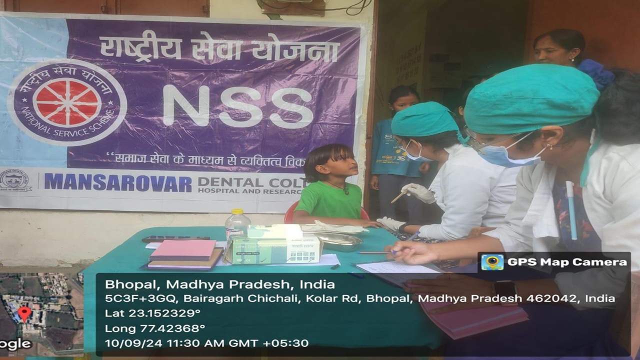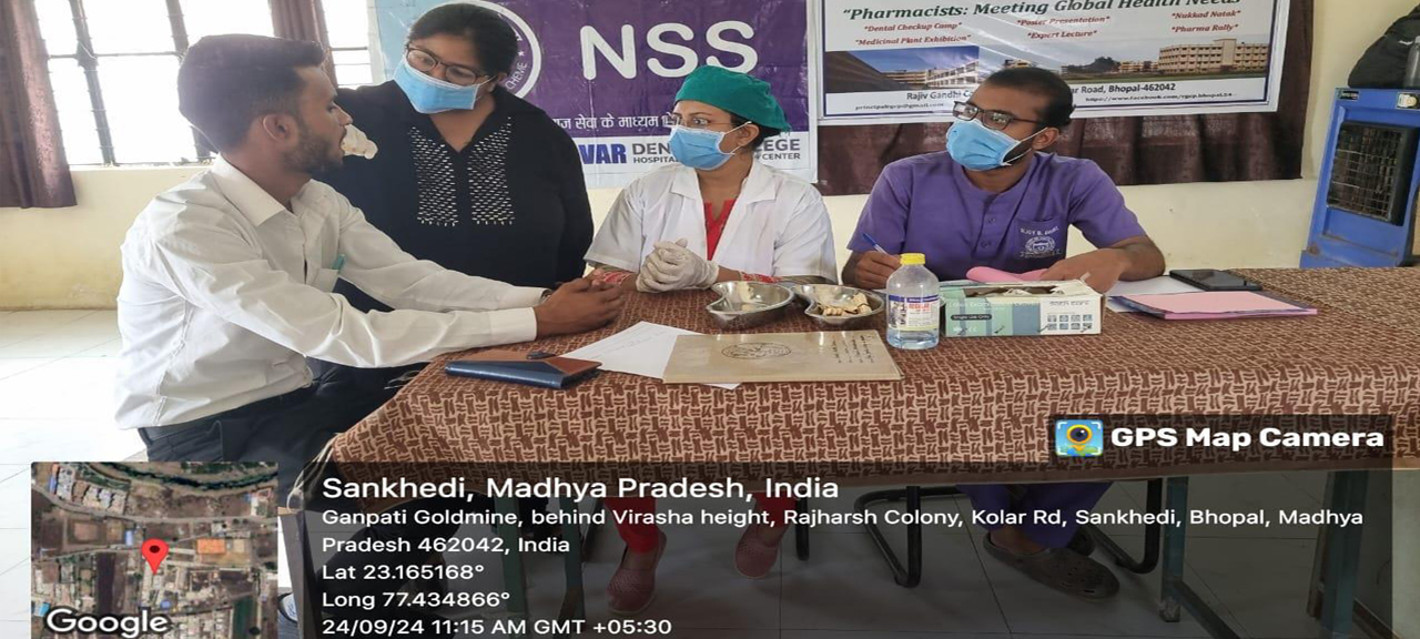 Report of Dental Camp organized by NSS Unit on 24-09–2024 The National Service Scheme of Mansarovar Dental College ,Bhopal organized a one-day free dental camp for the benefit of students of Rajiv Gandhi College Of Pharmacy on 19th sept 2024. The organizing team included NSS volunteers led by Dr. Ankita , and Dr. Prakash . The teams arrived to the location at 10 am. Students attended the dental camp and benefitted. After the checks up, many people were benefitted with the toothpastes and brushes provided free of cost . Few of the patients were referred by the doctors for further treatment at Mansarovar Dental College Bhopal. The NSS volunteers played a vital role in making this camp success with their dedication in serving people, they directed people in all needy way.