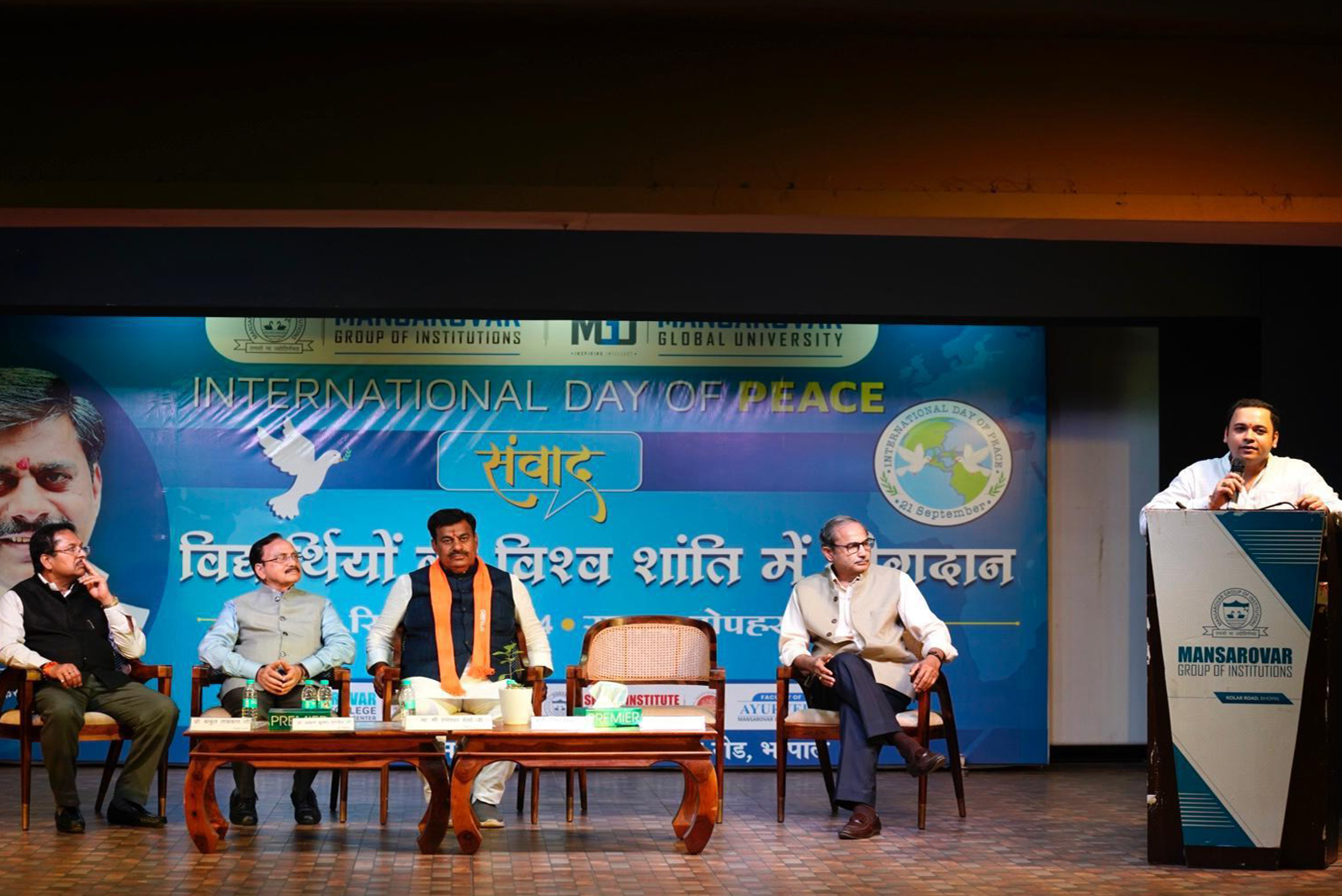 The International Day of Peace (“Peace Day”) is observed around the world each year on 21 September. Established in 1981 by unanimous United Nations resolution, Peace Day provides a globally shared date for all humanity to commit to Peace above all differences and to contribute to building a Culture of Peace. This year's theme, “Cultivating a Culture of Peace,” reminds us that peace is not merely the absence of conflict but requires active engagement in dialogue, understanding, and cooperation. Mansarovar Dental College ,Bhopal observed International Day of Peace, A Dialogue was conducted , shri Rameshwar Sharma ji graced the occasion.