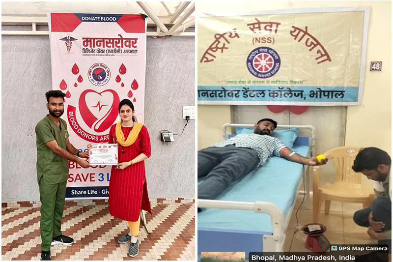 Mansarovar group of institutions, Bhopal organized a blood donation camp at the Kolar Road campus on 30th May 2023 for thalassemia child patients. This camp was organized in collaboration with A.B.V.P. In which more than 370 units of blood were collected. All faculty members, Indian army officers, ABVP volunteers, other staff, and students participated in this program.