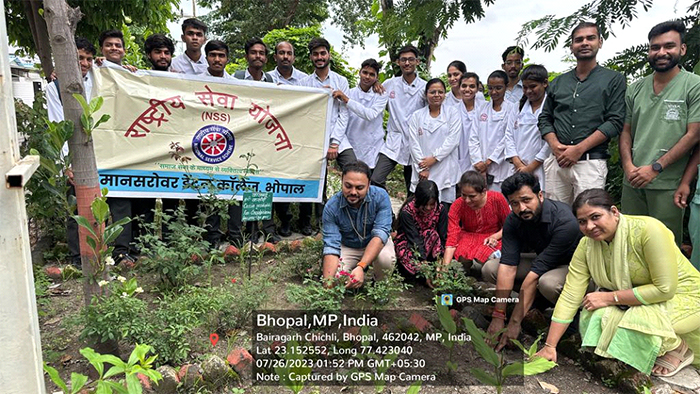 On 26th July, saplings were planted by the NSS volunteers of Mansarovar dental college, Bhopal for the protection of the environment in the college premises in memory of martyrs.